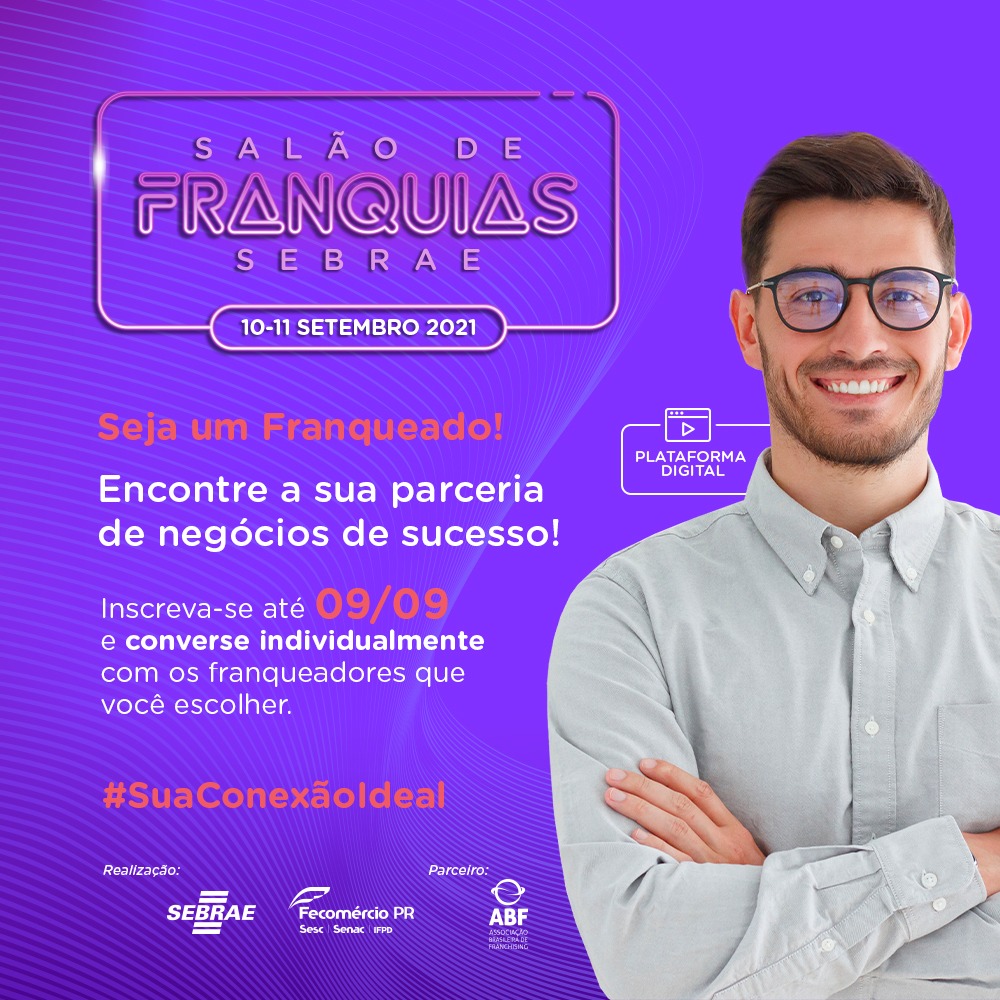 Inscreva-se gratuitamente até 09/09: https://www.sebraepr.com.br/salaodefranquias/”
